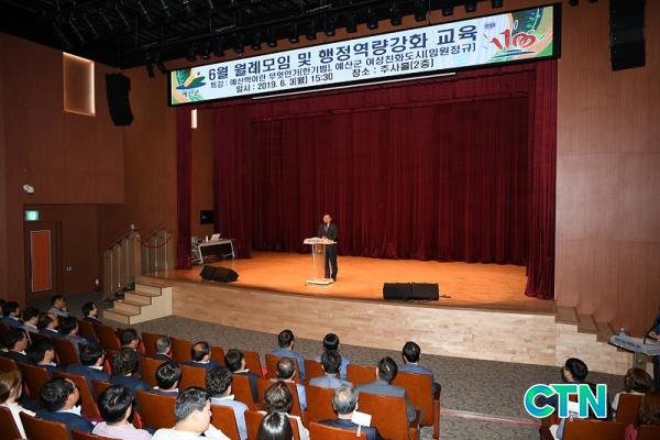 [¿¹»ê/ctn]ÃÖ¿ë°ü ±âÀÚ = ¿¹»ê±ºÀÌ Áö³ 3ÀÏ ±ºÃ» Ãß»çȦ¿¡¼ Á÷¿ø 300¿© ¸íÀ» ´ë»óÀ¸·Î 6¿ù ¿ù·Ê¸ðÀÓ ¹× ÇàÁ¤¿ª·®°È ±³À°À» ½Ç½ÃÇß´Ù.