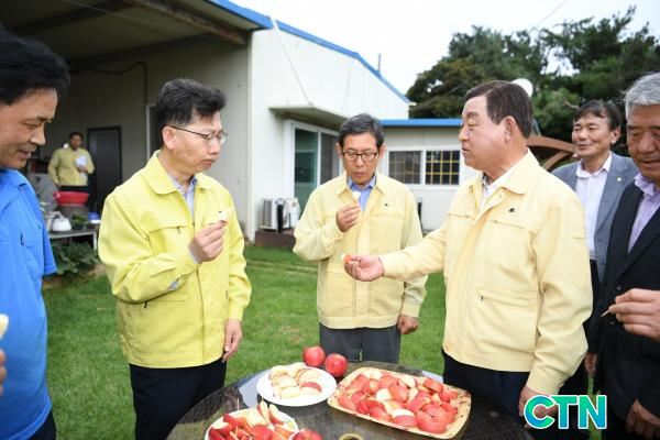 ±èÇö¼ö Àå°üÀº "¿¹»êÀÇ ´ëÇ¥ Ư»êǰÀÎ »ç°ú °¡°Ý Ç϶ôÀ¸·Î ³ó¹ÎµéÀÌ ¾î·Á¿òÀ» °ÞÀ» °ÍÀ¸·Î ¿¹»óµÇ´Â ¸¸Å ¸¹Àº ºÐµéÀÌ ¿¹»ê»ç°ú¸¦ »ç¶ûÇØÁÖ½Ã±æ ¹Ù¶õ´Ù"°í ¸»Çß´Ù.