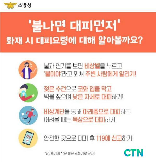 'ºÒ ³ª¸é ´ëÇǸÕÀú' ÈÀç ´ëÇÇ¿ä·ÉÀ¸·Î´Â ¡ãºÒ°ú ¿¬±â¸¦ º¸¸é ºñ»óº§À» ´©¸£°Å³ª "ºÒÀ̾ß"¶ó°í ¿ÜÃÄ ´Ù¸¥ »ç¶÷¿¡°Ô ¾Ë¸®±â ¡ãÁ¥Àº ¼ö°ÇÀ¸·Î ÄÚ¿Í ÀÔÀ» ¸·°í º®À» ¤À¸¸ç ³·Àº ÀÚ¼¼·Î ´ëÇÇÇϱ⠡ãºñ»ó°è´ÜÀ» ÅëÇØ ¾Æ·¡ÃþÀ¸·Î ´ëºñÇϰí, ¾î·Á¿ï ¶§´Â ¿Á»óÀ» ´ëÇÇÇØ¾ß ÇÑ´Ù.