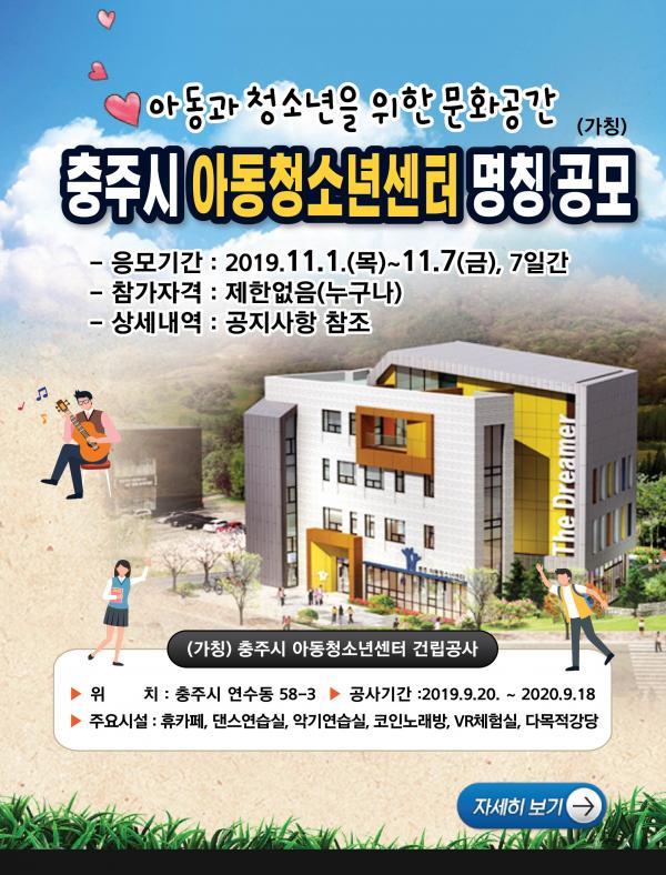 [ÃæÁÖ/ctn]¹Úö¿ì ±âÀÚ= ÃæÁֽ𡠾Ƶ¿°ú û¼Ò³âÀÇ ¶Ç·¡È°µ¿°ú ¿©°¡È°¿ëÀ» À§ÇÑ »õ·Î¿î °ø°£ÀÌ µÉ (°¡Äª)ÃæÁֽà ¾Æµ¿Ã»¼Ò³â¼¾ÅÍÀÇ ¸íĪÀ» °ø¸ðÇÑ´Ù°í ¹àÇû´Ù.