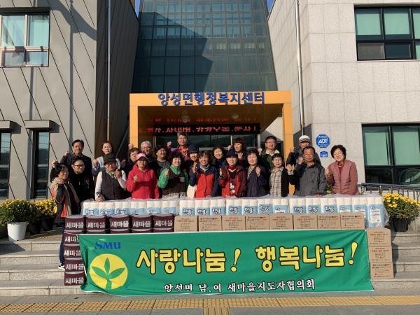 ¾Ó¼º¸é»õ¸¶À»ÇùÀÇȸ(ÇùÀÇȸÀå ÃÖ¿µ±Ù, ºÎ³àȸÀå È«ÈñÀÚ)´Â 7ÀÏ º»°ÝÀûÀÎ µ¿Àý±â¸¦ ¾ÕµÎ°í °ü³» 38°³ °æ·Î´ç ¹× ¼Ò¿Ü°èÃþ¿¡ ȸ¿ø 20¿©¸íÀÌ Á÷Á¢ ¸¸µç ¹«±èÄ¡¸¦ ³ª´²µå¸®´Â '»ç¶û³ª´®! Çູ³ª´®' Çà»ç¸¦ ¿¾ú´Ù.