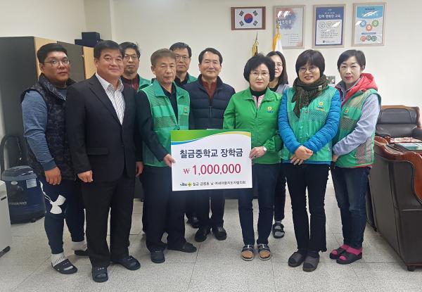 [ÃæÁÖ/ctn]¹Úö¿ì ±âÀÚ= ÃæÁֽà ĥ±Ý±Ý¸ªµ¿»õ¸¶À»ÇùÀÇȸ(ȸÀå Àå¾çÈ£, ºÎ³àȸÀå ±è¾Ö¼÷)´Â 12ÀÏ Åº±ÝÁßÇб³¿Í Ä¥±ÝÁßÇб³¸¦ ¹æ¹®ÇØ °¢ Çб³º° 100¸¸¿ø¾¿, ÃÑ 200¸¸¿øÀÇ ÀåÇбÝÀ» ±âŹÇß´Ù.