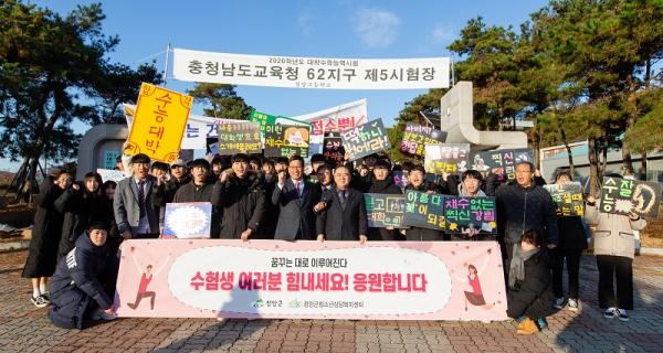 [û¾ç/ctn]ÀÓÁ¾º¹ ±âÀÚ = ±èµ·°ï Ãæ³² û¾ç±º¼ö°¡ 14ÀÏ Ã»¾ç°íµîÇб³ ±³¹® ¾Õ¿¡¼ û¼Ò³â»ó´ãº¹Áö¼¾ÅÍ, û¼Ò³â¹®ÈÀÇÁý °ü°èÀÚµé°ú ÇÔ²² 2020Çг⵵ ´ëÇмöÇдɷ½ÃÇè¿¡ ÀÀ½ÃÇÑ ¼öÇè»ýµéÀ» ÀÀ¿øÇÏ´Â Ä·ÆäÀÎÀ» °¡Á³´Ù.