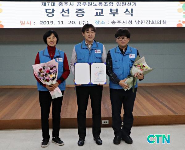 [ÃæÁÖ/ctn]¹Úö¿ì ±âÀÚ= ÃæÁֽðø¹«¿ø³ëµ¿Á¶ÇÕ Á¦7´ë À§¿øÀåÀ¸·Î ȸ°è°ú ¹ÚÁ¤½Ä(¸¸ 50¼¼, ÇàÁ¤7±Þ) ÁÖ¹«°üÀÌ ´ç¼±µÆ´Ù.