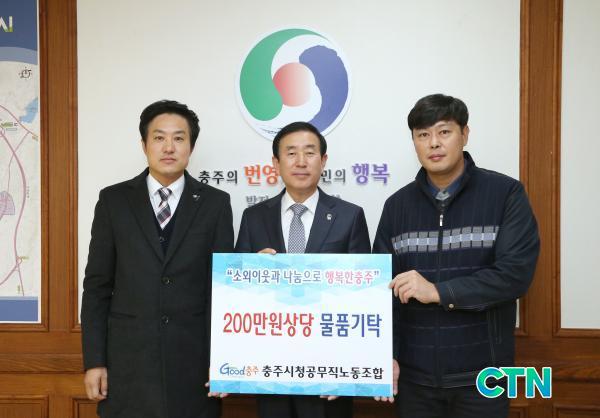 [ÃæÁÖ/ctn]¹Úö¿ì ±âÀÚ= ÃæÁÖ½Ãû °ø¹«Á÷³ëµ¿Á¶ÇÕ(À§¿øÀå À±»óÇå)Àº 5ÀÏ ¾î·Á¿î ÀÌ¿ôÀ» À§ÇØ »ç¿ëÇØ ´Þ¶ó¸ç Á¶±æÇü ÃæÁÖ½ÃÀå¿¡°Ô 200¸¸¿ø »ó´çÀÇ ¹é¹Ì 10§¸, 74Æ÷¸¦ Àü´ÞÇß´Ù°í ¹àÇû´Ù.