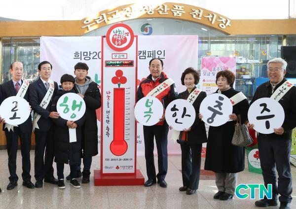 '³ª´®À¸·Î ÇູÇÑ ÃæºÏ' ½½·Î°Ç ¾Æ·¡ Èñ¸Á2020 ³ª´® Ä·ÆäÀÎÀÇ ÀÏȯÀ¸·Î ÁøÇàµÈ À̳¯ Çà»ç´Â »ç¶ûÀÇ ¿¸Å ¹× ¹èºÐ»ç¾÷ Àü´Þ½Ä, ¼º±ÝÀü´Þ½Ä, ¿ÂµµÅ¾Á¦¸·½Ä, ÀÌ¿ôµ½±â ¼º±Ý ÇöÀå Á¢¼ö ¼øÀ¸·Î À̾îÁ³´Ù.