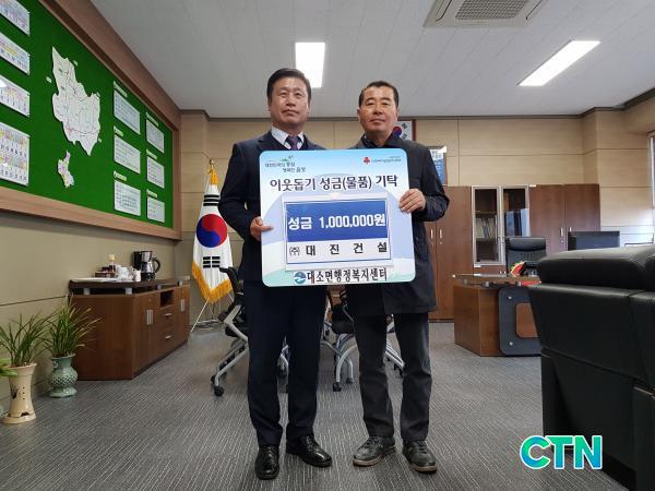 [À½¼º/ctn]¹Úö¿ì ±âÀÚ= ¢ß´ëÁø°Ç¼³(´ëÇ¥ ¾È±â´ö)Àº Áö³ 4ÀÏ ´ë¼Ò¸é ÇàÁ¤º¹Áö¼¾ÅÍ(¸éÀå ³²¿ø½Ä)¸¦ ¹æ¹®ÇØ Àú¼ÒµæÃþ¿¡°Ô Àü´ÞÇØ´Þ¶ó¸ç ¼º±Ý 100¸¸¿øÀ» ±âŹÇß´Ù.