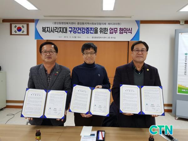 [Á¦Ãµ/ctn]äö½Ä ±âÀÚ = Á¦Ãµ½Ã Áß¾Óµ¿ ÇàÁ¤º¹Áö¼¾ÅÍ(µ¿Àå ÀÌÁ¾ÇÑ)¿Í Áß¾Óµ¿ Áö¿ª»çȸº¸ÀåÇùÀÇü(¹Î°£À§¿øÀå ¼µ¿Èñ), äġ°úÀÇ¿ø(¿øÀå ±¸Àͼ)Àº Áö³ 9ÀÏ º¹Áö»ç°¢Áö´ë ±¸°°Ç° ÁõÁøÀ» À§ÇÑ ¾÷¹«Çù¾àÀ» ü°áÇß´Ù.