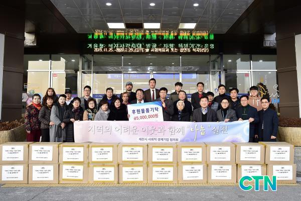 [Á¦Ãµ/ctn]äö½Ä ±âÀÚ = Á¦Ãµ½Ã »çȸÀû°æÁ¦±â¾÷ÇùÀÇȸ(ȸÀå ½ÅÇÐÁÖ)´Â Áö³ 16ÀÏ Á¦Ãµ½Ãû Çö°ü¿¡¼ °ü³» »çȸÀû°æÁ¦±â¾÷ÀÌ Âü¿©ÇÏ´Â ¹°Ç°ÈÄ¿ø Çà»ç¸¦ °³ÃÖÇß´Ù.