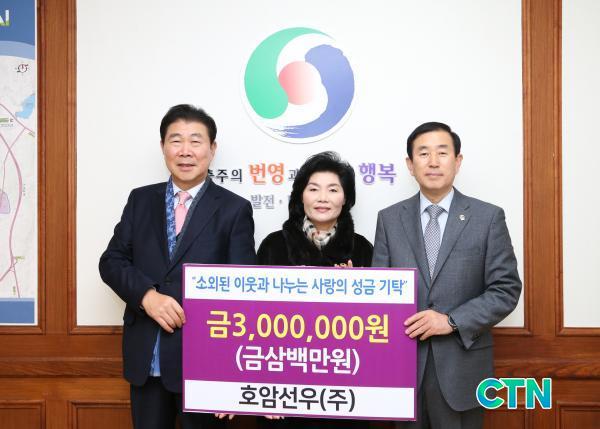 [ÃæÁÖ/ctn]¹Úö¿ì ±âÀÚ= È£¾Ï¼±¿ì(ÁÖ)(´ëǥȸÀå Á¤¼±ÀÓ)´Â 18ÀÏ ÃæÁÖ½ÃûÀ» ¹æ¹®ÇØ Áö¿ª ³» ¾î·Á¿î ÀÌ¿ôÀ» µ½´Â µ¥ ½á´Þ¶ó¸ç ¼º±Ý 300¸¸¿øÀ» ±âŹÇß´Ù.