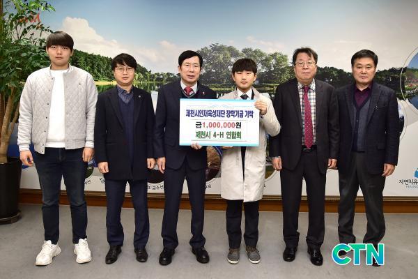 [Á¦Ãµ/ctn]äö½Ä ±âÀÚ = Á¦Ãµ½Ã4-H¿¬ÇÕȸ(ȸÀå ½ÅÁ¤¹Î)´Â Áö³ 26ÀÏ Áö¿ª ÇлýµéÀ» À§ÇØ ½á´Þ¶ó¸ç °øµ¿°úÁ¦Æ÷ ¿î¿µ ¼öÀÍ±Ý 100¸¸¿øÀ» Á¦Ãµ½Ã ÀÎÀçÀ°¼ºÀç´Ü¿¡ ÀåÇбÝÀ¸·Î ±âŹÇß´Ù°í ¹àÇû´Ù.