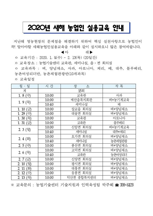 À̹ø ±³À°Àº Áö³ÇØ ¿µ³ó¼º°ú¿¡ ´ëÇÑ Á¾ÇÕÆò°¡¿Í »õÇØ ¿µ³ó°èȹ ¼ö¸³, ¿¬±¸ °³¹ßµÈ »õ·Î¿î ±â¼ú µî¿¡ ´ëÇÑ ±³À°À» ÅëÇØ ³ó¾÷Àο¡°Ô »õÇØ ¿µ³ó ¼öÇà¸ñÇ¥¿Í ºñÀüÀ» Á¦½ÃÇϱâ À§ÇØ ¸¶·ÃµÆ´Ù.