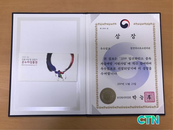 [Á¦Ãµ/ctn]äö½Ä ±âÀÚ = Á¦Ãµ½Ãº¸°Ç¼Ò(¼ÒÀå À±¿ë±Ç)¿Í Á¦Ãµ½ÃÁ¤½Å°Ç°º¹Áö¼¾ÅÍ(¼¾ÅÍÀå ¿ø¹Ì¶ó)°¡ '2019³â ÀÏ»êÈź¼ÒÁßµ¶ Àڻ쿹¹æ Áö¿ø»ç¾÷' ¿ì¼ö±â°üÀ¸·Î ¼±Á¤µÇ¾î º¸°Çº¹ÁöºÎ Àå°ü»óÀ» ¼ö»óÇß´Ù.
