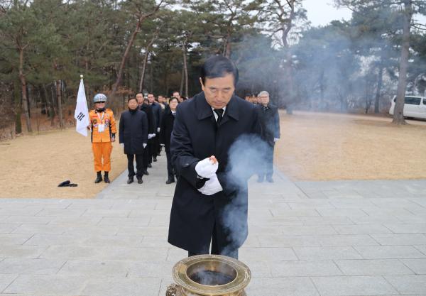 À̳¯ Á¶ ½ÃÀå°ú °£ºÎ°ø¹«¿øµéÀº ÇåÈ¿Í ºÐÇâ, ¹¬³äÀ» ¾ö¼÷ÇÏ°Ô ÁøÇàÇϸç Á¶±¹À» À§ÇØ »êÈÇÑ ¿µ·ÉµéÀÇ ¸íº¹À» ºô¾ú´Ù.