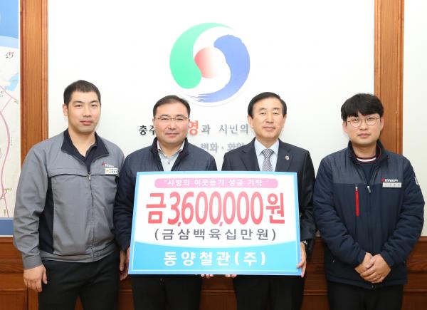 [ÃæÁÖ/ctn]¹Úö¿ì ±âÀÚ= µ¿¾çö°ü(ÁÖ) ÃæÁÖ°øÀå(°øÀåÀå À±»óÈ£)Àº 8ÀÏ ÃæÁÖ½ÃûÀ» ¹æ¹®ÇØ Áö¿ª ³» ¾î·Á¿î ÀÌ¿ôÀ» À§ÇØ ½á ´Þ¶ó¸ç ±Þ¿© ¿ì¼ö¸® 360¸¸¿øÀ» ±âŹÇß´Ù.