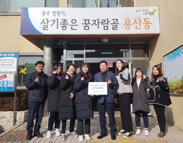 [ÃæÁÖ/ctn]¹Úö¿ì ±âÀÚ= ÃæÁÖ¿©ÀÚ°íµîÇб³ ±×·çÅͱ⠵¿¾Æ¸®(´ëÇ¥ Àü¿¹Çö)´Â 13ÀÏ ¿ë»êµ¿ÇàÁ¤º¹Áö¼¾ÅÍ(µ¿Àå ±è¼®ÇÏ)¸¦ ¹æ¹®ÇØ Áö¿ª ³» ¼Ò¿ÜµÈ ÀÌ¿ôµéÀ» À§ÇØ »ç¿ëÇØ´Þ¶ó¸ç »ç¶ûÀÇ ÀÌ¿ôµ½±â ¼º±ÝÀ» Àü´ÞÇß´Ù.