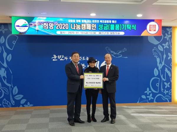 ¿¹»ê´ëÁß¹®È¿¹¼úÇùȸ´Â Áö³ 10ÀÏ ±ºÃ»¿¡¼ ÁøÇàµÈ 'Èñ¸Á 2020 ³ª´® Ä·ÆäÀÎ' ÀÌ¿ôµ½±â ¼º±Ý ±âŹ½Ä¿¡ µ¿ÂüÇßÀ¸¸ç, À̳¯ ±âŹµÈ ¼º±ÝÀº Áö³ÇØ 12¿ù 27ÀÏ ±ºÃ» Ãß»çȦ¿¡¼ '»ç¶ûÀ¸·Î ÀÌ¿ô°ú ÇÔ²²ÇÏ´Â ¼Û³âÀ½¾Çȸ'¸¦ °³ÃÖÇÏ°í ±× ÀÔÀå°´ ¼ö¸¸Å 1Àδç 5000¿ø¾¿À» »ç¶ûÀÇ ¿¸Å ³ª´® ºÀ»ç´Ü¿¡ ±âºÎÇϱâ·Î °áÁ¤ÇÑ µ¥ µû¸¥ °ÍÀÌ´Ù.