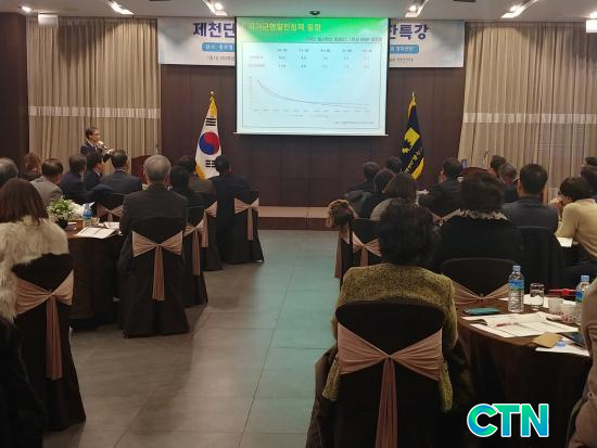 À̳¯ Ư°Àº ¼Û¿ì°æ(KIET»ê¾÷¿¬±¸¿ø) ¹Ú»ç¿Í ¼³¿µÈÆ(ÃæºÏ¿¬±¸¿ø)¹Ú»ç¸¦ ÃÊû, '±¹°¡±ÕÇü¹ßÀüÁ¤Ã¥µ¿Çâ°úÁ¦Ãµ´Ü¾ç ´ëÀÀ¹æÇâ'°ú '2020³âµµ ±¹³»¿Ü °æÁ¦Àü¸Á'À» ÁÖÁ¦·Î ÁøÇàÇßÀ¸¸ç, ÀÌ»óõ Á¦Ãµ½ÃÀå, ¹Ú¼º¿ø µµÀÇ¿øÀ» ºñ·ÔÇÏ¿© Á¦Ãµ´Ü¾çÁö¿ª ȸ¿ø»ç ´ëÇ¥ ¹× ÀÓÁ÷¿ø À¯°ü±â°üÀå µî 80¿©¸íÀÌ Âü¼®Çß´Ù.
