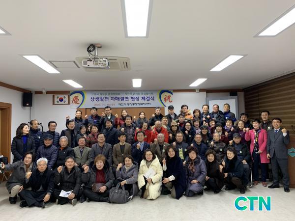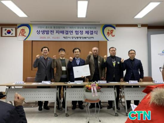 [Á¦Ãµ/ctn]äö½Ä ±âÀÚ = Á¦Ãµ½Ã Áß¾Óµ¿ ÅëÀåÇùÀÇȸ(ȸÀå ÀÌõ´ö)¿Í °í¾ç½Ã Èïµµµ¿ ÅëÀåÇùÀÇȸ(ȸÀå Àå¼®¹è)°¡ Áö³ 15ÀÏ Áß¾Óµ¿ ÇàÁ¤º¹Áö¼¾ÅÍ(µ¿Àå ÀÌÁ¾ÇÑ)¿¡¼ ÀڸŰῬÀ» ¸Î°í »óÈ£ ±³·ù¸¦ ¾à¼ÓÇß´Ù.