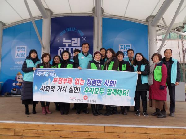 [ÃæÁÖ/ctn]¹Úö¿ì ±âÀÚ= ±¹¹Î°Ç°º¸Çè°ø´Ü ÃæÁÖÁö»ç(Áö»çÀå ÀÌÁ¾Ãµ)´Â 2020.1.22ÀÏ ¼ÒºñÀÚ±³À°Áß¾Óȸ ÃæÁÖÁöȸ ȸ¿øµé°ú ÇÕµ¿À¸·Î ºÀ¹æµ¿ Àç·¡½ÃÀå ÀÏ´ë¿¡¼ °øÁ¤Çϰí Åõ¸íÇÑ Á÷¹« ¼öÇàÀ¸·Î, ±¹¹ÎÀ¸·ÎºÎÅÍ »ç¶û¹Þ´Â ±ú²ýÇÑ °ø´ÜÀ» ¸¸µé±â À§ÇÑ Ä·ÆäÀΰú 2020 ³âµµ ´Þ¶óÁö´Â °Ç°º¸ÇèÁ¦µµ¸¦ È«º¸Çß´Ù.