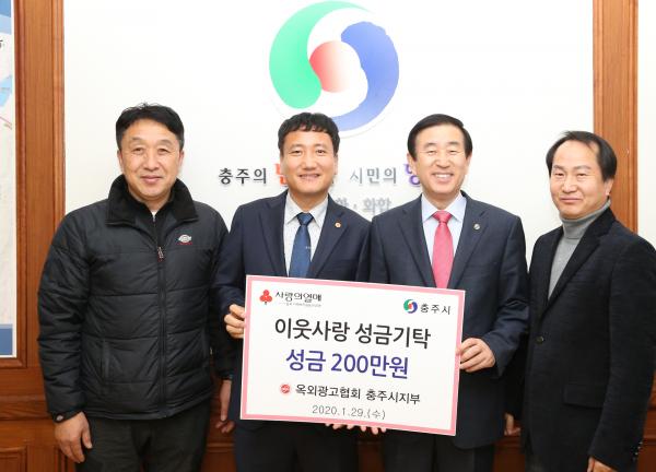 [ÃæÁÖ/ctn]¹Úö¿ì ±âÀÚ= ÃæºÏ¿Á¿Ü±¤°íÇùȸ ÃæÁÖ½ÃÁöºÎ(ÁöºÎÀå À庴¼·)´Â 29ÀÏ ÃæÁÖ½ÃûÀ» ¹æ¹®ÇØ ¾î·Á¿î ÀÌ¿ôÀ» À§ÇØ ½á´Þ¶ó¸ç ¼º±Ý 200¸¸ ¿øÀ» ±âŹÇß´Ù.