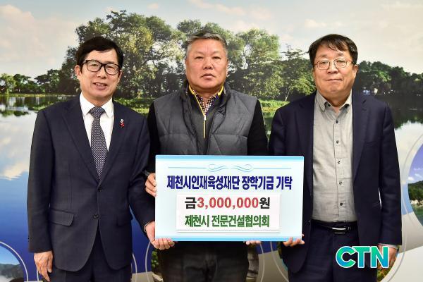 [Á¦Ãµ/ctn]äö½Ä ±âÀÚ = ´ëÇÑÀü¹®°Ç¼³Çùȸ ÃæÃ»ºÏµµÈ¸ Á¦Ãµ½ÃÇùÀÇȸ(ȸÀå ±è±âÈ£)´Â Áö³ 7ÀÏ Áö¿ª û¼Ò³âµéÀ» À§ÇÑ 300¸¸¿øÀÇ ÀåÇбÝÀ» Á¦Ãµ½ÃÀÎÀçÀ°¼ºÀç´Ü(ÀÌ»çÀå ÁöÁßÇö)¿¡ ±âŹÇß´Ù.