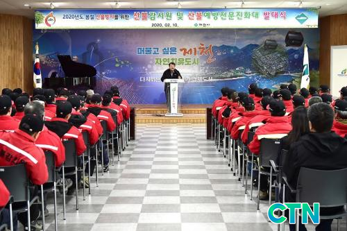 ºóÆ´¾ø´Â »êºÒ¿¹¹æ°ú Ãʵ¿ÁøÈż¼¸¦ ´ÙÁüÇϱâ À§ÇØ ¿¸° ÀÌ ³¯ ¹ß´ë½Ä¿¡´Â »ê¸²°ø¿ø°ú ¹× À¾¸éµ¿ ´ã´ç°ø¹«¿ø, »êºÒÀü¹®¿¹¹æÁøÈ´ë¿ø, »êºÒ°¨½Ã¿ø µî 190¿©¸íÀÌ Âü¿©Çß´Ù.