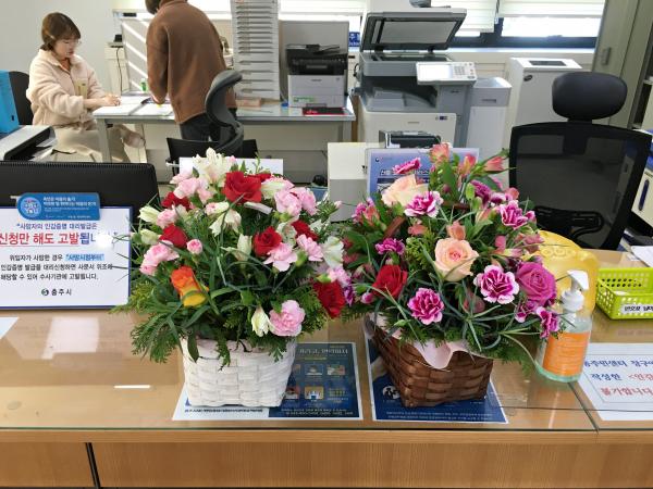 ÀÌ¿¡ ±³Çö2µ¿ ÇàÁ¤º¹Áö¼¾ÅÍ´Â À̹ø »çÅ·ΠÀÎÇØ ¾î·Á¿òÀ» °Þ°í ÀÖ´Â ÈÈѳ󰡸¦ µ½±â À§ÇÑ ¼Òºñ ÃËÁøÀÇ ÀÏȯÀ¸·Î Á¤ºÎ¿¡¼ ÃßÁø ÁßÀÎ »ç¹«½Ç ²É »ýȰÈ(1Table 1Flower) Ä·ÆäÀο¡ µ¿ÂüÇϱâ·Î Çß´Ù.