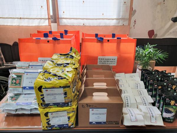 º» »ç¾÷Àº Áö¿ª ³» ¾÷ü·ÎºÎÅÍ ¸Å¿ù 1ȸ ½Äǰ, ½ÄÀç·á µî ¹°Ç°À» ÈÄ¿ø¹Þ¾Æ À庸±â°¡ ¾î·Á¿î °Åµ¿ºÒÆí Áֹο¡°Ô Àü´ÞÇÏ´Â »ç¾÷À¸·Î, 3¿ù¿¡´Â ±âÃÊ»ýȰº¸Àå ¼ö±ÞÀÚ Áß °í·ÉÀÇ È¦¸ö ¾î¸£½Å 5¼¼´ë¿¡ ´ÜÆÏ»§, °Ç°Áó, ±è, ¶ó¸é, µÎÀ¯ µîÀ» ´ãÀº ¸Ô°Å¸® ²Ù·¯¹Ì¸¦ Àü´ÞÇß´Ù.