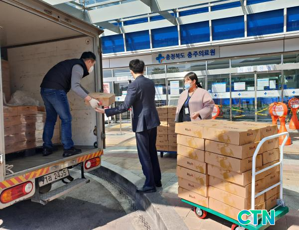 [ÃæºÏ/CTN] ¹Úö¿ì ±âÀÚ = ÃæºÏ¿ø¿¹³óÇù(Á¶ÇÕÀå ¹Úö¼±)ÀÌ Áö³ 11ÀÏ ÃæÁÖ½ÃûÀ» ã¾Æ Äڷγª19·Î ÀÎÇØ °í»ýÇÏ´Â ºÐµé¿¡°Ô Àü´ÞÇØ´Þ¶ó¸ç 300¸¸ ¿ø »ó´çÀÇ ÃæÁÖ»ç°ú 200¹Ú½º¸¦ ±âŹÇß´Ù.