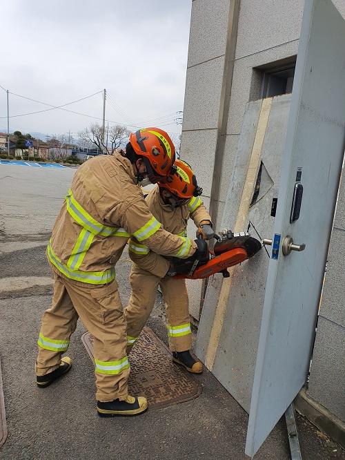 À̳¯ ÈÆ·ÃÀº µ¿·ÂÀý´Ü±â, ÇöóÁÀý´Ü±â, ¹æÈ¹®ÆÄ±«±â, ÃæÀü½Ä±×¶óÀδõ µî ¹æÈ¹® °³¹æ¿¡ ÇÊ¿äÇÑ Àåºñ¸¦ Ȱ¿ë ½ÇÀü°ú °°ÀÌ ÁøÇàµÇ¾úÀ¸¸ç, ÃâÀÔ¹® °³¹æ¿ä·É ½Àµæ, ÃâÀÔ¹® °³Æó½Ã Àåºñº° ¾ÈÀüÀÛµ¿ È®ÀÎ, Àåºñº° °³¹æ ¼Ò¿ä½Ã°£ È®ÀÎ µî Àç³ÇöÀå¿¡¼ÀÇ ´ëÀÀ´É·ÂÀ» °ÈÇϰíÀÚ ¸¶·ÃµÇ¾úÀ¸¸ç ¼Ò¹æ´ë¿ø »ç°í»ç·Ê ÀüÆÄ ¹× ¾ÈÀü±³À°, º¸À¯ ±¸Á¶Àåºñ ¼÷´ÞÈÆ·Ãµµ º´Çà ÁøÇàÇß´Ù.
