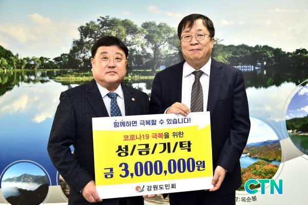 [Á¦Ãµ/CTN]äö½Ä ±âÀÚ = Á¦Ãµ½Ã °¿øµµ¹Îȸ(ȸÀå ÇöÁ¾ÅÂ)°¡ 18ÀÏ ¿ÀÀü Á¦Ãµ½Ã¿¡ Äڷγª 19 ±Øº¹À» À§ÇÑ ¼º±ÝÀ» ±âŹÇß´Ù.