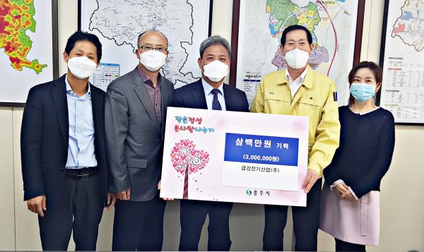 1994³â ¼³¸³ ÀÌÈÄ Áö¿ªÀÇ Å¾籤»ç¾÷À» ´ëÇ¥ÇØ ¿Â ±Ý°Àü±â»ê¾÷(ÁÖ)(´ëÇ¥ ¾ÈÀçȯ)Àº Áö³ 18ÀÏ ½ÃûÀ» ¹æ¹®ÇØ ¼º±Ý 300¸¸ ¿øÀ» ±âŹÇϸç, Äڷγª19·Î ¾î·Á¿òÀ» °Þ°í ÀÖ´Â ÀÌ¿ôµéÀ» À§ÇØ »ç¿ëÇØ ´Þ¶ó°í Àü´ÞÇß´Ù.