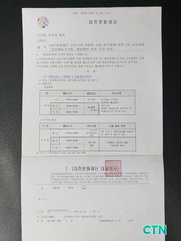 [ÇÖ À̽´/CTN]Á¤¹ÎÁØ ±âÀÚ¤Ó½ÅÁ¾Äڷγª°¨¿° ¿ì·Á°¡ Àü±¹ÀûÀ¸·Î È®»êµÇ´Â °¡¿îµ¥ ´ëÀü½Ã(½ÃÀå ÇãÅÂÁ¤)°¡ ´ëÀü¹®ÈÀç´Ü(¹Úµ¿Ãµ ´ëÇ¥)À¸·ÎºÎÅÍ ¿¹¼ú°¡ÀÇÁýÀ» ÀáÁ¤ ÃâÀÔÁ¦ÇÑ ÇßÁö¸¸ »ç½Ç»ó ÃâÀÔÁ¦ÇÑÀ» ¾îó±¸´Ï ¾ø´Â ÀÌÀ¯·Î ÇØÁ¦ÇØ ³í¶õÀÌ µÇ°íÀÖ´Ù.
