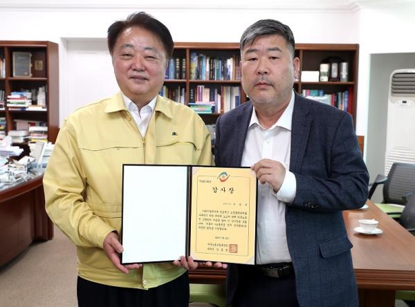ÀÌ ÀÚ¸®¿¡¼ ±èµ¿¸í À§¿øÀåÀº ³ëµ¿Á¸Áß ¹®È È®»êÀ» À§ÇØ ¸ÕÀú ¼ÕÀ» ³»¹Ð¾î ÁØ Çѹü´ö ûÁÖ½ÃÀå¿¡°Ô ³ëµ¿ÀÇ °¡Ä¡¸¦ Àϱú¿öÁØ °Í¿¡ ´ëÇÑ °¨»çÆÐ¸¦ ÀüÇϸç È´äÇß´Ù.