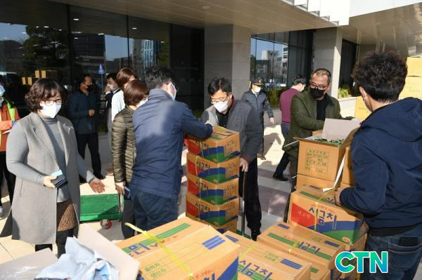 ÀÌ¿Í ÇÔ²² °ü³» ±â¾÷ü¿¡ 26¸¸¿ø »ó´çÀÇ ¿¹« 65¹Ú½º¿Í 16¸¸¿ø »ó´çÀÇ ¼ÔÀ½¹èÃß 41¹Ú½º, ²Ù·¯¹Ì 103¹Ú½º¸¦ °¢°¢ Çб³±Þ½ÄÁö¿ø¼¾ÅÍ ¹è¼Û¾÷ü Â÷·®À» ÀÌ¿ëÇÏ¿© Á÷Á¢ ¹è¼ÛÇß´Ù.