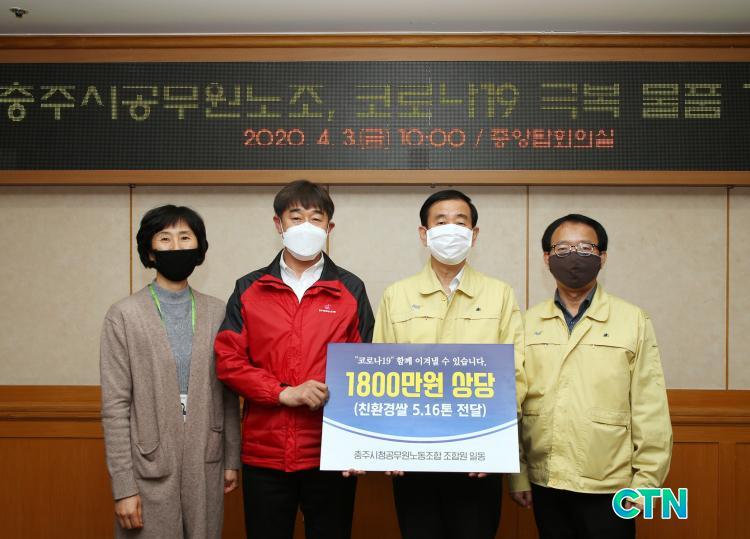 [ÃæÁÖ/CTN] ¹Úö¿ì ±âÀÚ = ÃæÁֽðø¹«¿ø³ëµ¿Á¶ÇÕ(À§¿øÀå ¹ÚÁ¤½Ä)ÀÌ 3ÀÏ Äڷγª19 À§±â ±Øº¹À» À§ÇÑ ¸ð±Ý ¿îµ¿À» ÅëÇØ °íÅëºÐ´ã¿¡ µ¿ÂüÇß´Ù.