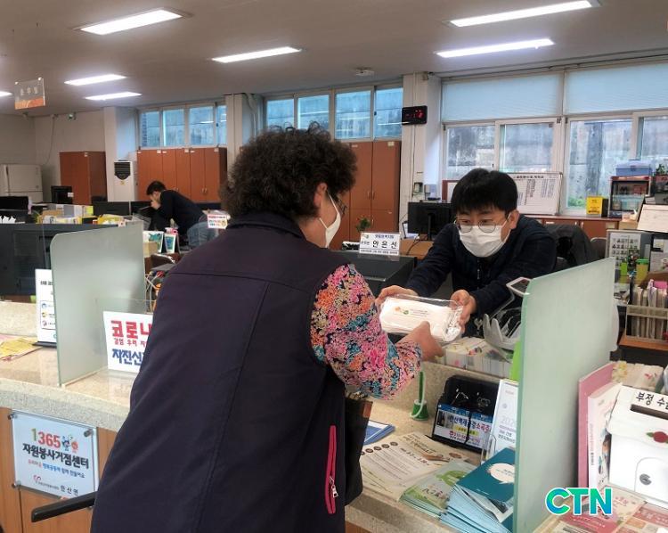 ¸¶½ºÅ©´Â À¾¸é ¸¶À» ºÐ´ãÁ÷¿ø, ÀÌÀå, ºÎ³àȸÀåÀÌ ÇÔ²² °¢ °¡Á¤¿¡ ¹èºÎ¿¡ ³ª¼¹À¸¸ç, Àδç 10°³¾¿ ¹èºÎµÇ°í ³²Àº 2600°³ÀÇ ¸¶½ºÅ©´Â »çȸº¹Áö½Ã¼³¿¡ ¹èºÎÇß´Ù.