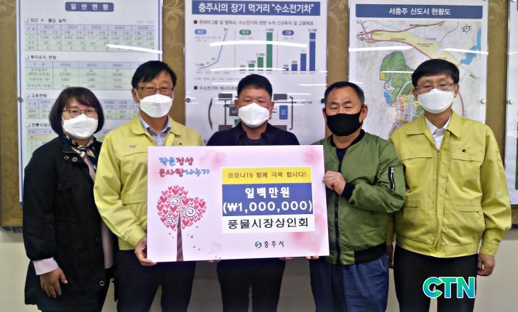 [ÃæÁÖ/CTN] ¹Úö¿ì ±âÀÚ = ÃæÁֽà ¹Î¼Ó5ÀÏÀå dz¹°½ÃÀå»óÀÎȸ(ȸÀå ÀÌÁ¾¼º)´Â 9ÀÏ ½Ã¸¦ ¹æ¹®ÇØ Äڷγª19 ±Øº¹À» À§ÇÑ ¼º±Ý 100¸¸ ¿øÀ» ±âŹÇß´Ù.