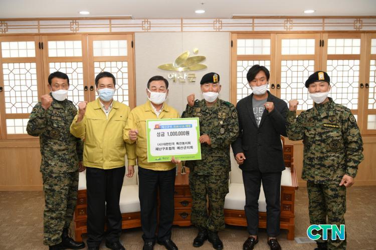 [¿¹»ê/CTN]ÃÖ¿ë°ü ±âÀÚ = ¿¹»ê±ºÀº Áö³ 9ÀÏ (»ç)´ëÇѹα¹ ƯÀüµ¿Áöȸ Àç³±¸Á¶Çùȸ ¿¹»ê±ºÁöȸ(ȸÀå Àΰæ½Ä)·ÎºÎÅÍ Äڷγª19·Î ¾î·Á¿òÀ» °Þ´Â ±º¹ÎÀ» À§ÇÑ ¼º±Ý 100¸¸¿øÀ» ±âŹ ¹Þ¾Ò´Ù.