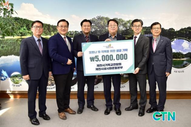 [Á¦Ãµ/CTN]äö½Ä ±âÀÚ = Á¦Ãµ½Ã ±âµ¶±³¿¬ÇÕȸ(ȸÀå ±è¿¬ÈÆ ¸ñ»ç)¿Í Á¦Ãµ½Ã ¼º½ÃÈ ¿îµ¿º»ºÎ(º»ºÎÀå ¹ÚÁ¤¹Î ¸ñ»ç)°¡ Äڷγª 19 ±Øº¹À» À§ÇÑ ¼º±ÝÀ» ±âŹÇϸç Áö¿ª»çȸ¿¡ ÀÜÀÜÇÑ °¨µ¿ÀÌ Àϰí ÀÖ´Ù.