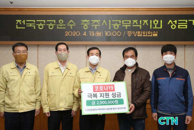 [ÃæÁÖ/CTN] ¹Úö¿ì ±âÀÚ = Àü±¹°ø°ø¿î¼ö»çȸ¼ºñ½º³ëµ¿Á¶ÇÕ ÃæÁֽðø¹«Á÷Áöȸ¿¡¼´Â 13ÀÏ ÃæÁÖ½Ãû Áß¾ÓžȸÀǽǿ¡¼ Äڷγª19 »çÅ Àå±âÈ·Î ¾î·Á¿òÀ» È£¼ÒÇϰí ÀÖ´Â ÀÌ¿ôµéÀ» À§ÇØ »ç¿ëÇØ ´Þ¶ó¸ç ¼º±Ý 200¸¸ ¿øÀ» ÃæÁֽÿ¡ Àü´ÞÇß´Ù.