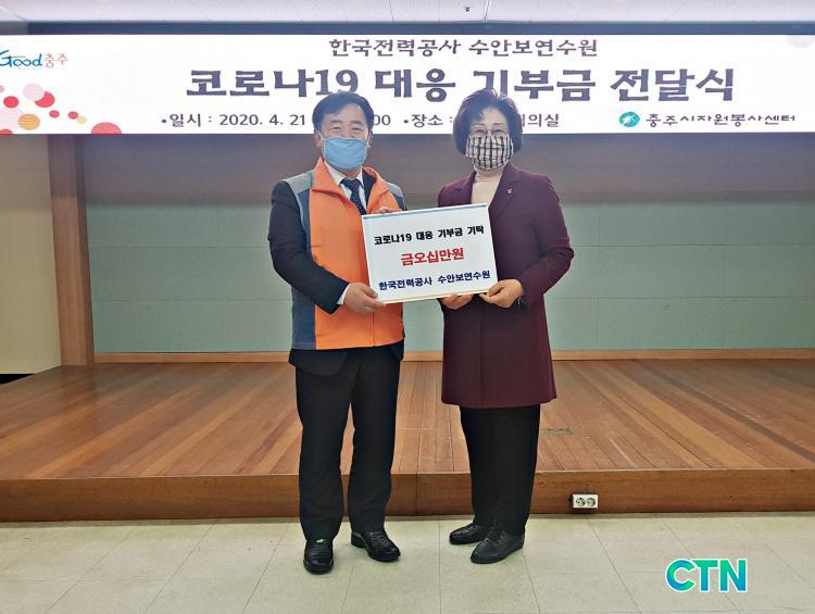 [ÃæÁÖ/CTN] ¹Úö¿ì ±âÀÚ = Çѱ¹Àü·Â°ø»ç ¼ö¾Èº¸¿¬¼ö¿ø(¿øÀå À庴¹®)Àº 21ÀÏ ½Ãû ³²ÇѰȸÀǽǿ¡¼ Äڷγª19 È®»ê ¹æÁö¿Í À§±â ±Øº¹À» À§ÇÑ ÈÄ¿ø±Ý 50¸¸ ¿øÀ» ÃæÁÖ½ÃÀÚ¿øºÀ»ç¼¾ÅÍ(¼¾ÅÍÀå ¹ÚÀÎÀÚ)¿¡ Àü´ÞÇß´Ù.