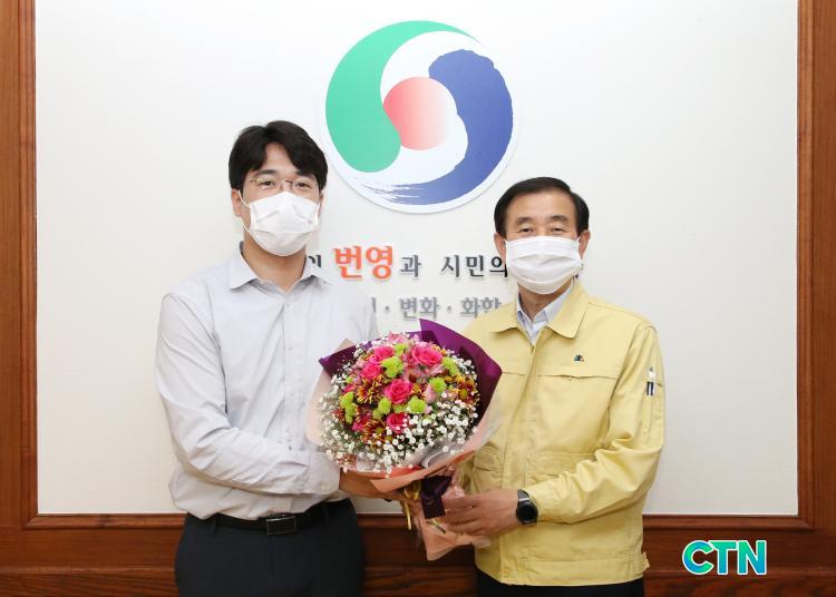 ÇÑÆí, Á¶±æÇü ÃæÁÖ½ÃÀåÀº Áö³ 4ÀÏ ½ÃÀå Áý¹«½Ç¿¡¼ Çö´ë¿¤¸®º£ÀÌÅÍ ÃæÁÖÁö¿ª û³âÀÎÀç 1È£·Î ÃÖÁ¾ ÇÕ°ÝÇÑ À̱ÙÁß¾¾¿¡°Ô ÃàÇÏ ²É´Ù¹ßÀ» Àü´ÞÇÏ°í °Ý·ÁÇÏ´Â ±ô¦ À̺¥Æ®¸¦ ¸¶·ÃÇØ ÇÑÃþ Àǹ̸¦ ´õÇß´Ù.