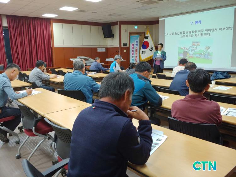 [û¾ç/CTN]ÀÓÁ¾º¹ ±âÀÚ = û¾ç±º»ç°ú¿¬±¸È¸(ȸÀå Ç㵿¹ü) ȸ¿øµéÀÌ ±Ù°ñ°Ý°è ÁúȯÀ» ¿¹¹æÇϱâ À§ÇÑ ³óÀÛ¾÷ ¾ÈÀü±³À°À» ¹Þ°í ÀÖ´Ù.