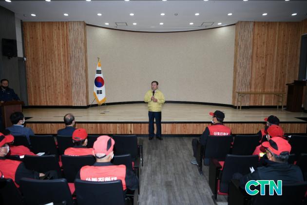 [¿¹»ê/CTN]ÃÖ¿ë°ü ±âÀÚ = ¿¹»ê±ºÀº 19ÀÏ ¿¹»ê¹®È¿ø¿¡¼ »êºÒÀü¹®ÁøÈ´ë ¹× »ê¸²Ãà»ê°ú Á÷¿ø µî 45¸íÀÌ Âü¼®ÇÑ °¡¿îµ¥ »ó¹Ý±â »êºÒ¹æÁö Àü¹®±³À°À» ½Ç½ÃÇß´Ù.