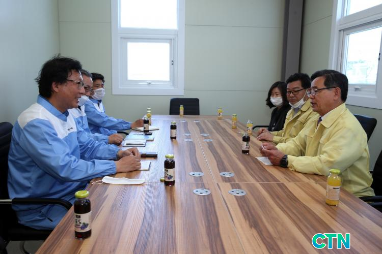 [¼Ãµ/CTN]ÀÓÁ¾º¹ ±âÀÚ = ³ë¹Ú·¡ ¼Ãµ±º¼ö´Â ¼Ãµ ÀåÇ×±¹°¡»ýÅ»ê¾÷´ÜÁö(ÀÌÇÏ ÀåÇ×»ê´Ü)¿¡ µÕÁö¸¦ ư ±â¾÷À» ¹æ¹®ÇÏ¿© Äڷγª19 »óȲÀ» °øÀ¯Çϰí À§±â ±Øº¹À» À§ÇÑ ¹ßºü¸¥ Çຸ¿¡ ³ª¼¹´Ù.