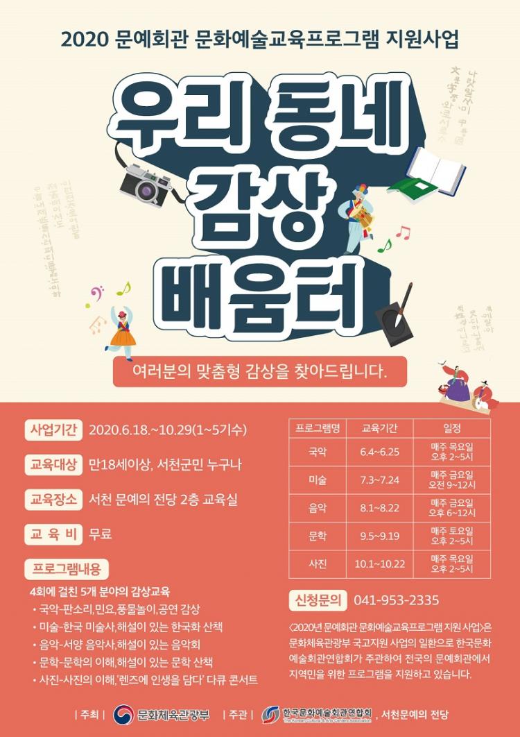 À̹ø ±³À° ÇÁ·Î±×·¥Àº Çѱ¹¹®È¿¹¼úȸ°ü¿¬ÇÕȸ¿¡¼ ÁÖ°üÇÑ '¹®¿¹È¸°ü ¹®È¿¹¼ú ±³À° ÇÁ·Î±×·¥'ÀÇ ÀÏȯÀ¸·Î, ¼Ãµ±º¿¡ °ÅÁÖÇÏ´Â ¼ºÀε鿡°Ô ¹«·á·Î ¾Ç±â ¼ö¾÷°ú ¿¹¼ú °¨»ó ¼ö¾÷À» ÁøÇàÇÑ´Ù.