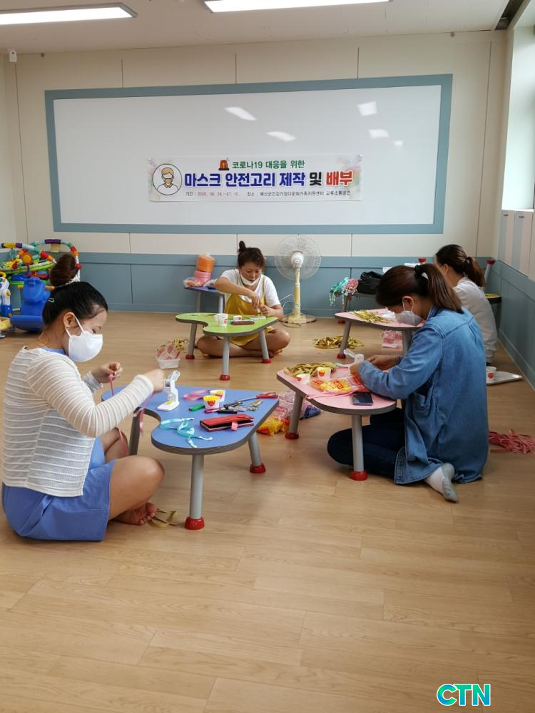 ¸¶½ºÅ© ¾ÈÀü°í¸® Á¦ÀÛ »ç¾÷Àº °ü³» ´Ù¹®È°¡Á·ÀÌ ÇÔ²² Âü¿©ÇØ Äڷγª19 È®»êÀ» ¿¹¹æÇÏÀÚ´Â ÃëÁö¿¡¼ ÃßÁø ÁßÀ¸·Î ¼¾Å͸¦ ÀÌ¿ëÇÏ´Â °áÈ¥ÀÌÁÖ¿©¼º°ú Å뿪À» µ½´Â ±Û·Î¹ú ¼ÒÅë°¡, ¼¾ÅÍ Á÷¿ø µîÀÌ Á¦ÀÛ¿¡ µ¿ÂüÇß´Ù.