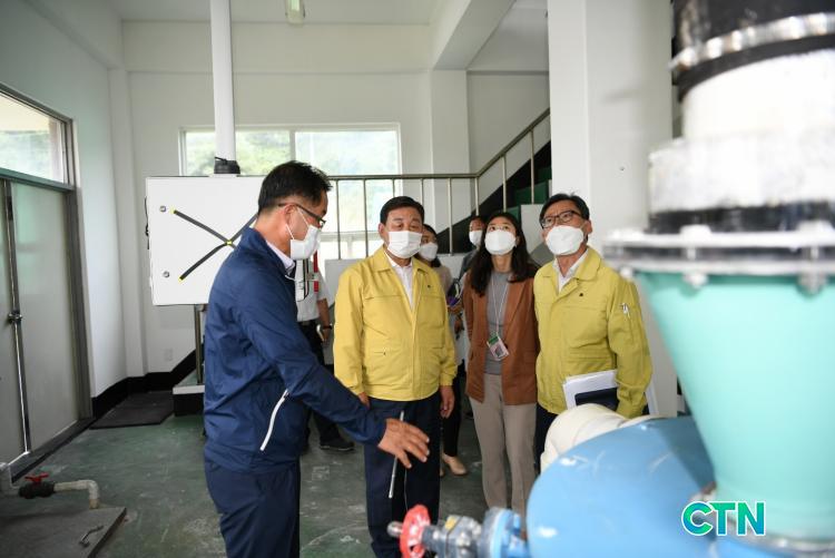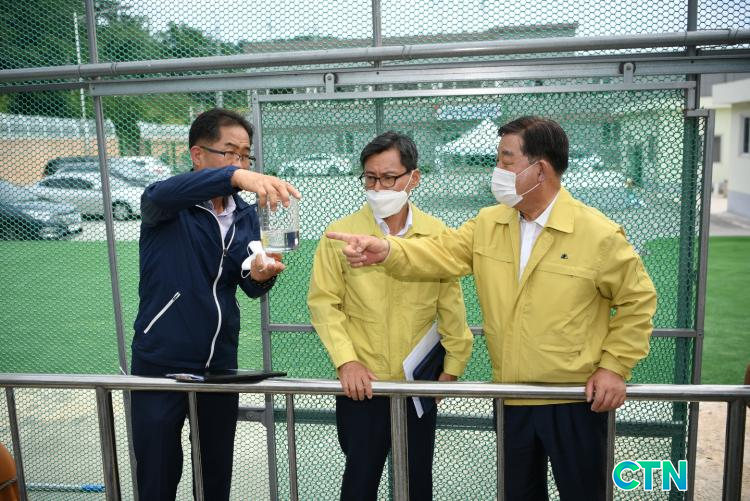 Ȳ¼±ºÀ ¿¹»ê±º¼ö(»çÁø °¡¿îµ¥)¿Í ¹ÚÇÏÁØ ±Ý°À¯¿ªÈ¯°æÃ»Àå(¿À¸¥ÂÊ)ÀÌ ¿¹»êÁ¤¼öÀå°ú ¹è¼öÁö¸¦ ¹æ¹®ÇØ ½Ã¼³ ¿î¿µ»óŸ¦ »ìÇÇ´Â ¸ð½À
